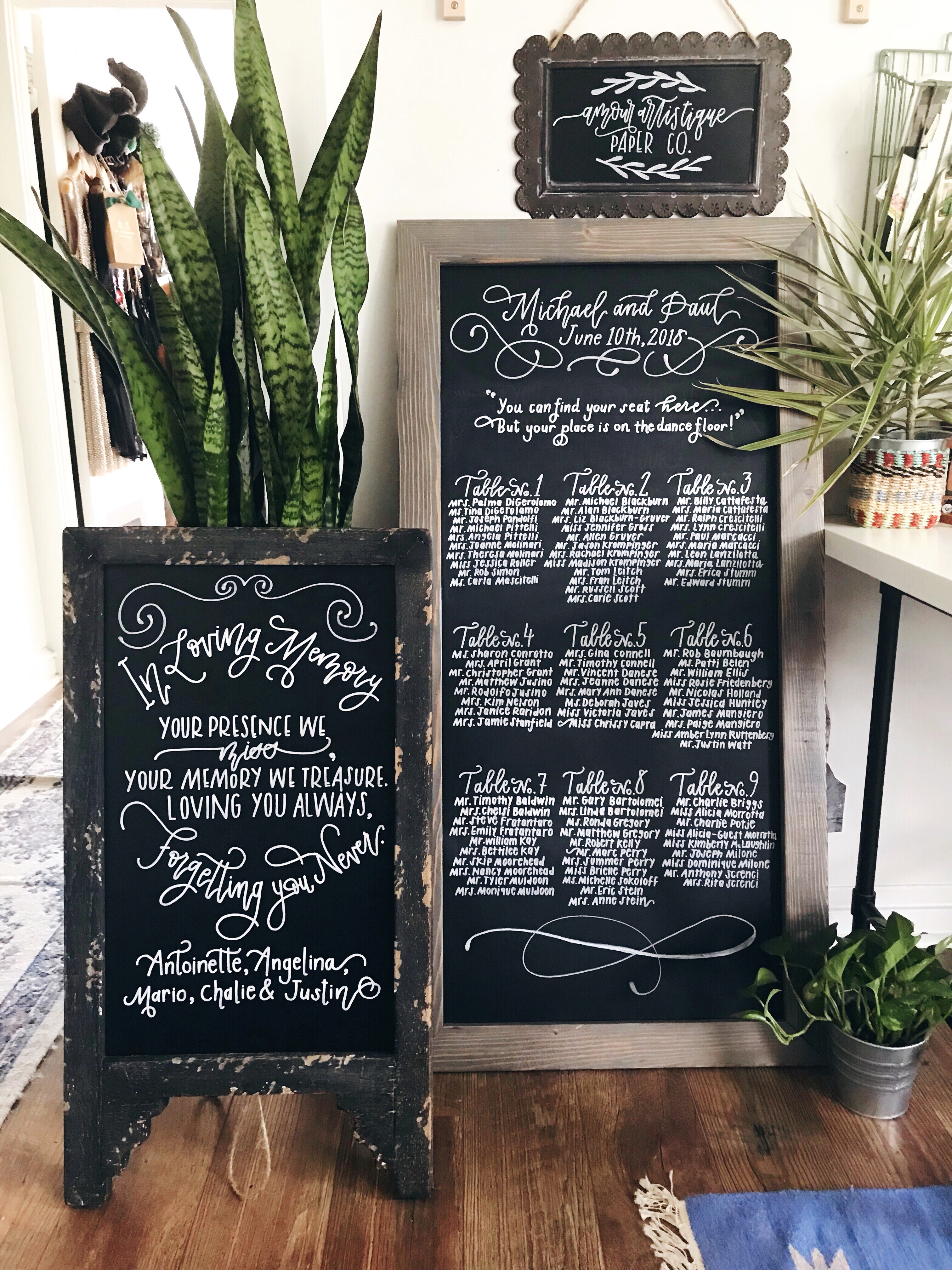 As you scroll through Amour Artistique Paper Co.’s Instagram you can start to see a pattern of the bold prints and fonts embedded on parchment. There are videos of Martha’s hand effortlessly guilding across paper crafting beautiful while holding a unique pen. Although invitations are her primary focus her work is used on other objects such as hangers, mirrors and, antique looking jars. Her calligraphy work on objects looks absolutely wonderful and could be the perfect addition to home or office space.
